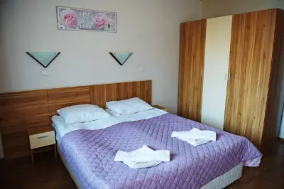 • Двойни стаи - разполагат с две легла (събрани или разделени ) или спалня + разтегателен фотьойл за дете или едно допълнително редовно легло, баня с тоалетна и мини хладилник. Част от двойните стаи разполагат и с тераса