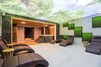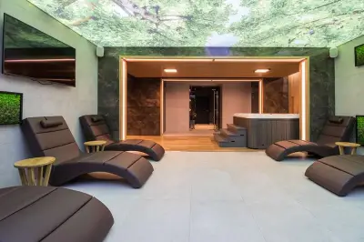 Външен басейн, парна баня, сауна, солна стая, приключенски душове, релакс зона, масажно студио, външни басейни с минерална вода,