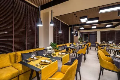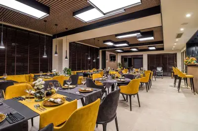 Ресторантът посреща всяка сутрин своите гости с богата ароматна и разнообразна закуска с ободряващи свежи напитки, Предлага първокласна, свежа и балансирана храна, подбирайки най-добрите продукти, приготвени по здравословен начин с безкомпромисно качество.