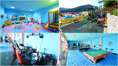 • Вътрешен басейн с полу-олимпийски размери с минерална вода, детски басейн с топла минерална вода