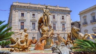 Сиракуза е най-известната гръцка колония в Средиземноморието. Някога описана от Цицерон като "най-великия гръцки град и най-красивия от всички". Това е и родното място на Архимед. Посещение с местен екскурзовод на историческия център, о-в Ортиджа, под закрилата на Юнеско. Пешеходната туристическа програма започва от храма на Аполон – най-старият дорийски храм в Сицилия от 6 в. пр. хр., площад Архимед, площадът „Ил Дуомо” с прекрасната катедрала и църквата „Света Лучия”, където се намира и оригиналът на едно от големите платна на Караваджо „Погребението на Света Лучия”. Обиколката завършва при извора на Аретуза, където ще научите легендата за вечната любов. Свободно време с възможност за разходка с лодка около острова или до морските пещери, посещение на музея на Архимед или музея „Белломо” или разходка в пристанищната крепост на Сиракуза Кастело-Маниаче от 13 в. В ранния следобед се отправяме към Ното, обявен за перфектният бароков град. Истинско бижу на барока, включено в листата на ЮНЕСКО. Туристическа програма с местен екскурзовод по централната улица, от двете страни на която са разположени църквите с манастирите, Катедралата, Палацо Николачи с най-красивите барокови балкони на света. Свободно време с възможност за посещение на Палацо Николачи – имението на богати търговци на риба тон.