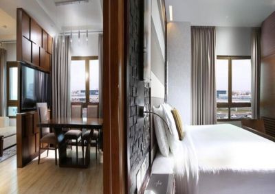 В стаите: Стаята разполага с телевизор, сателитна телевизия, минибар с безплатна вода, сейф, телефон, душ, сешоар, безплатен Wi-Fi, климатик, халати и чехли, както и ютия с дъска за гладене, които се предоставят при поискване. Освен това стаята разполага с комплект за приготвяне на чай и кафе.