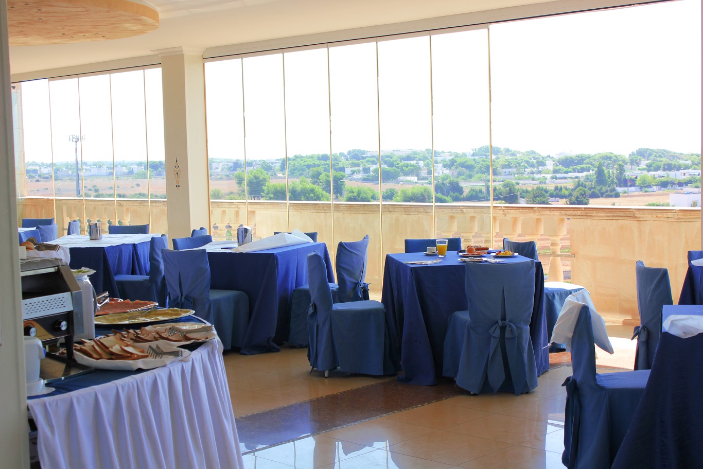 Разнообразната и богата закуска се предлага на блок маса в зала на 4-тия етаж с красива панорама. Закуската продължава от 7:30 до 10 ч и включва хляб, колбаси, яйца, сирена, йогурт, разнообразие от тестени сладкиши, мюсли, свежи плодове, плодов сок, кафе, мляко и чай.