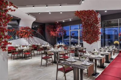 На територията на хотела: На територията на хотела има конферентни зали (срещу заплащане), амфитеатър, няколко открити басейна и воден парк за деца. За възрастни има басейн с пързалки и водни атракции. Хотелът разполага с основен ресторант, отворен от 07:00 до 21:30 часа, и няколко а-ла-карт ресторанта, включително италиански, мексикански, далекоизточен, гръцки, турски и рибен. Има още месен ресторант, пицария, барове край басейна, на плажа, на терасата, на кея и други заведения.