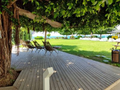 Плаж: Собствен пясъчен, на места с малки камъчета, осигурени безплатни чадъри и шезлонги. Бар на плажа.