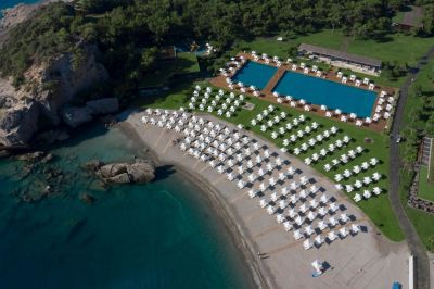 Плаж: На територията на хотела (100 м от основната сграда) се намира частен плаж с малки камъчета. Два частни 200-метрови залива, 400-метров частен плаж, 30-метров плаж за деца. Шезлонги, чадъри, матраци, плажни кърпи са безплатни. Входът към морето е малко камъче. Кабини за преобличане, душ, спасител на плажа, бар. Частните павилиони са платени. Обслужване на хладни кърпи и бърсане на слънчеви очила на плажа (безплатно).