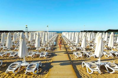 Плаж: Собствен, пясъчен плаж точно пред хотела в непосредствена близост, шезлонги и чадъри - безплатни, снек ресторант на плажа, плажни партита (веднъж седмично).