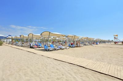 Плаж: Собствен пясъчен плаж точно пред хотела, удостоен със син флаг. Дължината на плажа е 220 м и платформа – 1800 м2. Шезлонги, чадъри, матраци, плажни кърпи - безплатно. Душ, съблекални. Павилиони на плажа, кея и край басейна (срещу заплащане).