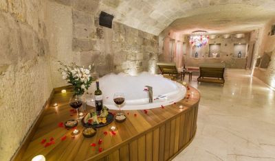 Разположение: Imperial Cave Suites & SPA се намира в центъра на Гьореме, на 650 метра от Музея на открито, на 40 км от летище Невшехир Кападокия. Хотелът е разположен в Национален парк Гьореме, който е в списъка на ЮНЕСКО за световно културно наследство и предлага лесен достъп до исторически, културни и туристически атракции на Кападокия. Хотелът е позициониран в подножието на хълм, който предлага красива гледка към залеза.