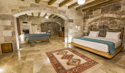 Стаи: Imperial Cave Suites & SPA предлага специално проектираните със стил и елегантност 24 стаи. Стаите разполагат със самостоятелни бани и са обзаведени с мебели в номадски и отомански стил и безплатен WiFi интернет достъп. Тъй като стаите са вкопани в пещери, имат естествена климатизация, която ги поддържа хладни през лятото и топли през зимата. Някои предлагат джакузи, хидромасажна вана, хидромасажен душ или сауна, сешоар, други включват и кафемашина Nespresso, климатик, минибар, LCD телевизор, сет за приготвяне на кафе и чай, сейф.