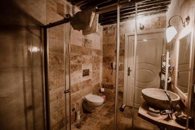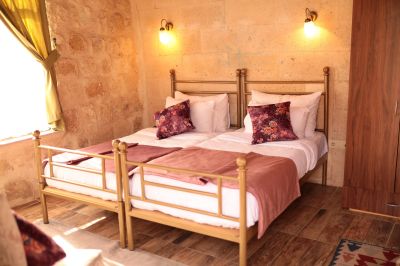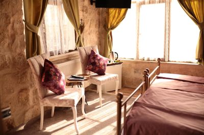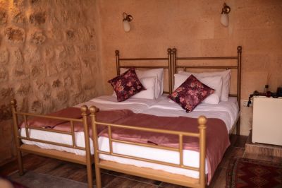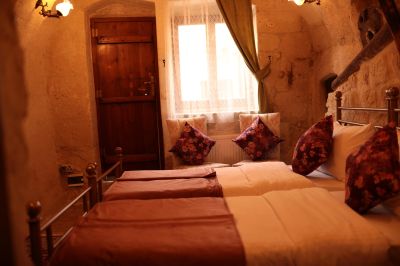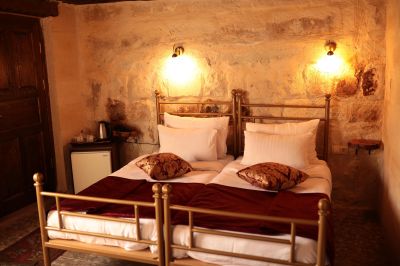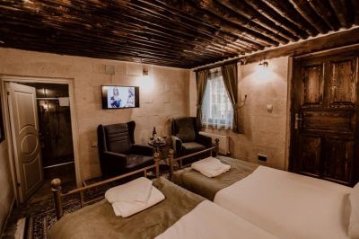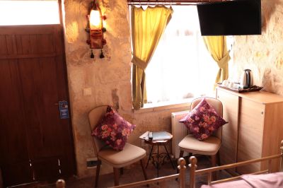 Стаи Хотелът предлага настаняване в 13 стаи – от пещерен тип: - Стандартни стаи – около 30 кв.м. - Делукс стаи – около 40 кв.м. - Суити – около 50 кв.м. Всички стаи са обзаведени с: · Телевизор с плосък екран · Баня · Балкон · Сейф · Сет за чай/кафе · Централна отоплителна система · Джакузи в стаите делукс.