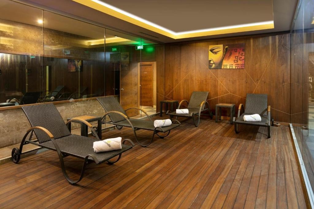 На територията на хотела: Основен бюфет ресторант, 2 а ла карт ресторанта(рибен и турски, с предварителна резервация и веднъж безплатно посещение на един за 7 дневен престой), снек ресторант, сладкарница, 5 бара, открит и закрит басейн, басейн с водни пързалки, СПА център, фитнес зала и магазини.
