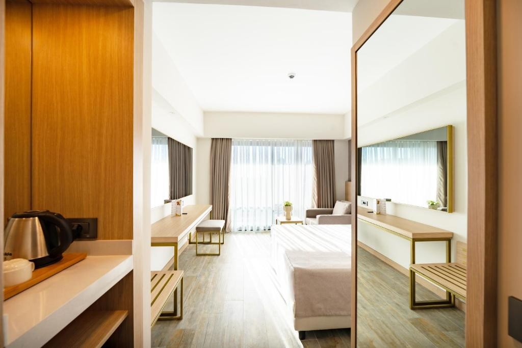 Хотелът предлага просторни и комфортни възможности за настаняване с 275 стаи и модерна 5-етажна архитектура, като приоритет е удобството на гостите с 5 асансьора.