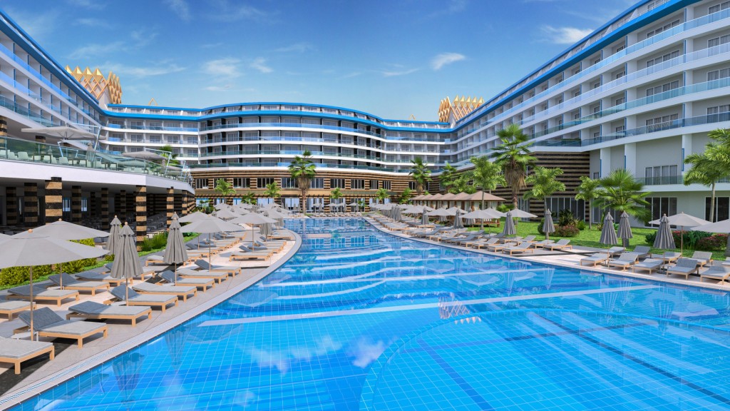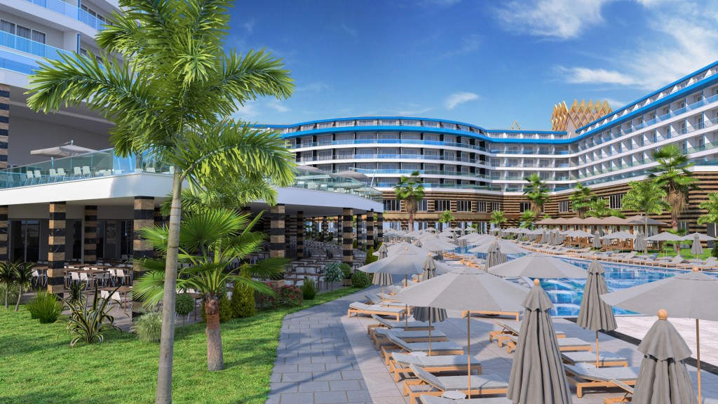 Разположение: Eftalia Blue 5* се намира на 4 км от Конаклъ, на 18 км от Алания, на 100 км от международно летище Анталия. Хотелът ще бъде отворен за сеон 2026 г. и ще бъде разположен върху територия с обща площ от 43,000 м2.