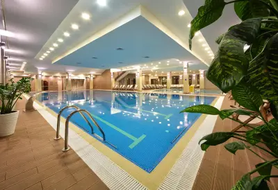 Сред най-прекрасните хотели в категорията ни Хотели Велинград с пет звезди, който е сред красотата на природата и ви предлага превъзходната възможност да се намирате сред неописуемо красив пейзаж – това е Гранд хотел Велинград. Заобикаля го красивата гора на града, а луксът във вътрешността е невероятен. Гранд хотел Велинград разполага с Уелнес и СПА, като общата им площ е 1200кв.м. Това ги прави едни от най-големите подобни съоръжения във Велинград. Така че, не се съмнявайте, Гранд хотел Велинград прави всичко възможно да ви предостави неописуема почивка, през която да си починете от напрегнатото ежедневие. Също така ще можете да положите грижи за красотата си, а и да подпомогнете здравето си.