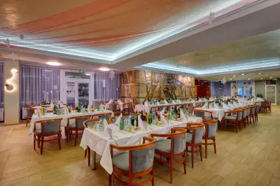 Ресторантът на хотела е с капацитет 400 места. В него се предлага богато меню: национална, европейска, вегетарианска, китайска, диетична, лечебна кухня. През летния сезон работи и ресторант-градина със 120 места с изглед към басейна.