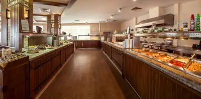 Комплекса разполага с основен ресторант в който предлага на своите гости великолепна и висококачествена разнообразна храна както и тематични вечери три пъти седмично, изхранването е на блок маса, комплексът разполага също и със стейк хаус "Паралия", грил & барбейкю "Тропикана" и бар на басейна.