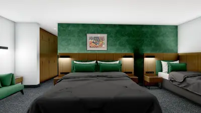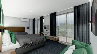 Хотелът предлага настаняване в стилно обзаведени и комфортни двойни стаи, студиа и едноспални апартаменти. Помещенията са разположени в изцяло реновираната част на хотела. Всяка стая разполага с балкон, климатик, минибар, телевизор с кабелна телевизия и собствен санитарен възел.
