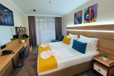 Настаняване: 113 стаи, студиа и апартаменти, разпределени както следва: 1 Ганд Апартамент, 2 Стандартни Апартамента, 10 Студиа, 20 Делукс Двойни Стаи, 78 Стандартни Двойни Стаи, 2 Стаи с достъп за инвалиди. Всички стаи имат балкон с гледка към Стара Планина