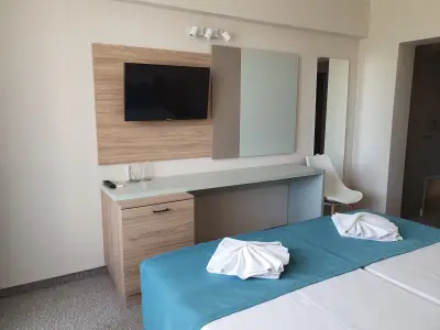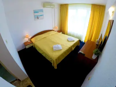 На 1 минута разстояние от залива „Атлиман“!!! Хотел „Лотос“ разполага с 3 апартамента и двойни стаи с възможност за допълнително легло. Те са оборудвани с климатик, телевизор с кабелна телевизия, безжичен интернет, мини-бар и големи панорамни тераси.