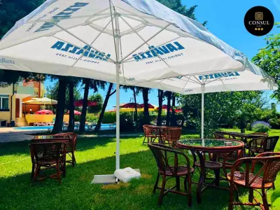 Хотел Консул предлага на своите гости уютен и просторен ресторант предлагащ изхранване на блок маса за закуска и вечеря и открита тераса с изглед към басейна.