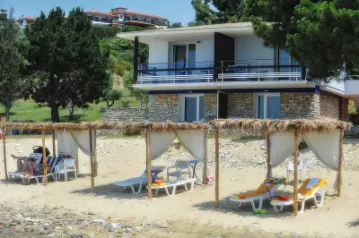 XENIA OURANOUPOLIS is located just 2 minutes from the town of OURANOUPOLIS, built on the most beautiful beach of the area, with an exceptional view towards Mount Athos, the tower of OURANOUPOLIS and the Amoliani island.
