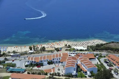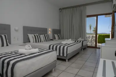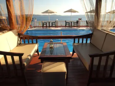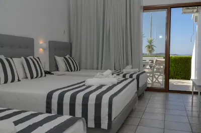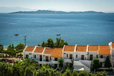 The beachfront Hotel Akti Ouranoupoli is situated on one of the loveliest beaches in Chalkidiki, offering views of Ammouliani and Sithonia. It features a beautiful pool and a 24-hour front desk.