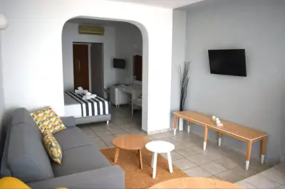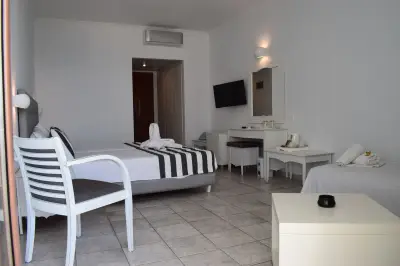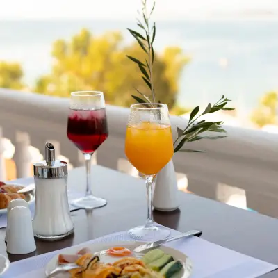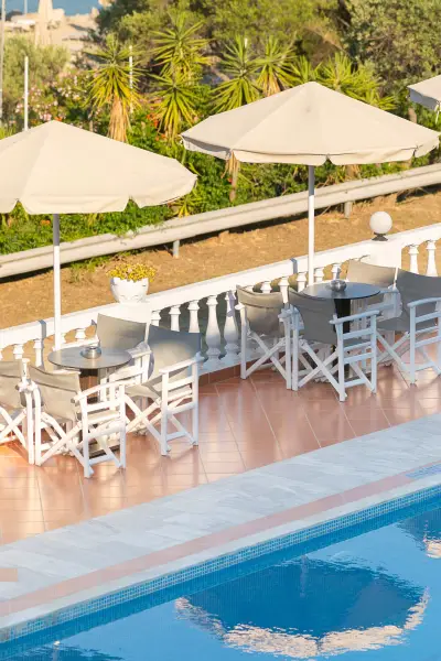 The in-house restaurant offers a rich continental buffet and in hotel's tavern à la carte lunch and dinner based on Greek and International cuisine. The Elia Tomata tavern serves fresh seafood and delicious traditional summer dishes.