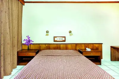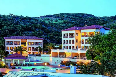 Theoxenia hotel is a 4 star hotel, inspired by Monastic architecture keeping with the local building styles in Ouranoupolis. All 151 rooms at Theoxenia sleep either four or six guests, so families are well accommodated, and each room features its own balcony or terrace with wonderful views over the surrounding area. There are four swimming pools onsite, including a large Olympic-sized pool and a dedicated kids' pool. Kids will also love the outdoor playground, as well as the Animation Program for 4-16 year olds. For adults, thereâs a relaxing massage centre, and a range of activities, including tennis, table tennis, and mini soccer. In the evenings, there are three bars to choose from, and a buffet restaurant serving up American-style cuisine. Itâs a quick and easy walk from the Theoxenia to the village of Ouranoupolis, which is the gateway to Mount Athos.Â