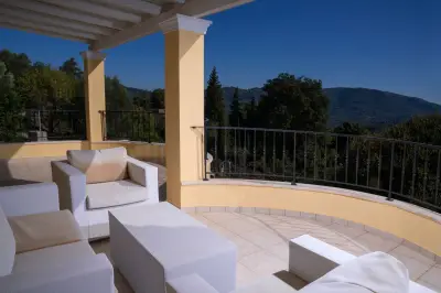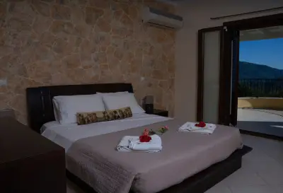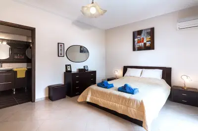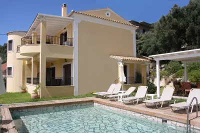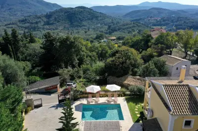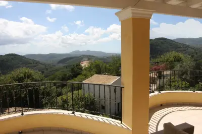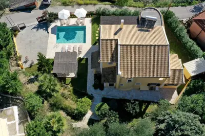 Infinity Villa is situated right in the middle of the island and close to its West side. Its strategic location makes it ideal for travelers keen to explore all the âmust visitâ attractions and beaches of the largest and most diverse among the Ionian Islands. Built in the heart of the Traditional village of Kato Pavliana, right below the villageâs church and campanile, it is completely eye-protected of the main road, thus providing relaxation and tranquility. It is surrounded by unspoiled nature and its revitalizing sounds and offers uninterrupted 180 views to the open countryside, clear Corfiot sky and the vast olive groves onto Paramonas. The renowned sandy beach of Agios Gordios with its crystal clear waters and stunning sunset is at 5 km (9 minute drive through untouched green scenery). The family resort beach of Paramonas is at 5 km (10 minute drive to the other side). The villa is built in respect to the traditional Corfiot Architectural style and features extensive grounds both indoors and outdoors. It can accommodate up to 8 guests with 4 bedrooms and 3 bathrooms, and is an idyllic place for a relaxing holiday for all the family or for groups of friends keen to leave everything behind for a while. The villa is furnished with dark wooden furniture and minimal, yet elegant decoration. Features very spacious rooms and indoor spaces, huge open plan kitchen (fully equipped with brand new electrical appliances and anything you need for preparation of meals) with dining area that can easily sit 10 guests, large living room with adobe fireplace, large verandas (furnished, with outdoor dining area) that open out to the countryside, large and brand new bathrooms and a small gym (for those who wish to leave everything behind except their daily work-out!). The interior marble stairs lead to the upper floor where there are 3 bedrooms and another 2 bathrooms that open to a share shaded-pergola veranda with stunning views to the countryside and the surroundings. The garden is well maintained and has a small dip pool and sun loungers in order for the tenants to luxuriate in their beautiful surroundings. There is a gazebo and another outdoor sitting/dining area behind the dip pool and a small organic vegetable farm, which the owner grows with great passion. Whatever grows in the garden is for its residents, so feel free to pick anything that suits your daily menu and offer yourselves the experience to taste vegetables as they should taste for a while! Parking for 2 car seats is also available within the property premises. Although quiet and peaceful there are many activities, attractions and places of interest within a few minutesâ drive, so a car is essential for those who want to have a complete taste of Corfu!