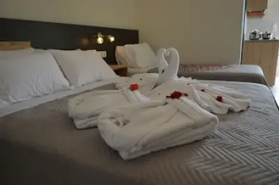 When you stay at Riposo Studios & Apartments in Corfu, you'll be near the beach, within a 15-minute walk of Kavos Beach and Lake Tsilaria. This hotel is 16.1 mi (25.9 km) from Port of Igoumenitsa and 3.5 mi (5.7 km) from Lefkimmi Port. Make yourself at home in one of the 4 air-conditioned rooms featuring kitchenettes with refrigerators and stovetops. Your Select Comfort bed comes with Egyptian cotton sheets. Rooms have private balconies or patios. Complimentary wireless Internet access keeps you connected, and 32-inch LED televisions are provided for your entertainment. Distances are displayed to the nearest 0.1 mile and kilometer. Kavos Beach - 0.6 km / 0.4 mi Lake Tsilaria - 1.1 km / 0.7 mi Arkoudilas Beach - 2.5 km / 1.5 mi Agios Petros Beach - 3.7 km / 2.3 mi Parakládi Beach - 4.2 km / 2.6 mi Lefkimmi Port - 5.7 km / 3.5 mi Agios Gordios Beach - 6.5 km / 4.1 mi Kánoulas Beach - 7.2 km / 4.5 mi Bouka Beach - 7.9 km / 4.9 mi Skalia Beach - 10.7 km / 6.6 mi Gardenos Beach - 11.6 km / 7.2 mi Molos Beach - 12.7 km / 7.9 mi Santa Barbara beach - 14.5 km / 9 mi Marathias beach - 16.5 km / 10.2 mi Lakkiess Beach - 19.1 km / 11.9 mi The preferred airport for Riposo Studios & Apartments is Ioannis Kapodistrias Airport (CFU) - 47 km / 29.2 mi Featured amenities include express check-in, express check-out, and multilingual staff. Free self parking is available onsite. Take in the views from a terrace and a garden and make use of amenities such as complimentary wireless Internet access. Additional amenities at this hotel include tour/ticket assistance, a picnic area, and barbecue grills. Wrap up your day with a drink at the beach bar. For the benefit of our customers, we have provided a rating based on our rating system. You'll be asked to pay the following charges at the property: A tax is imposed by the city: EUR 0.50 per accommodation, per night We have included all charges provided to us by the property. Cash transactions at this property cannot exceed EUR 500, due to national regulations. For further details, please contact the property using information in the booking confirmation. Social distancing measures are in place.