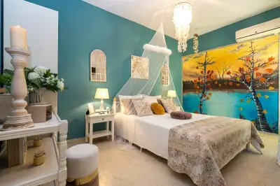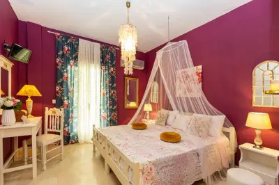 V.A Boutique Apartments & Suites offer Boutique apartments and Suites just a short walk from Acharavi centre and its beautiful beach.V.A Boutique Apartments and Suites are equipped with all the comforts of a seaside resort,only 50m away from the one of the most beautiful beaches in Corfu. With an outdoor pool, pool Bar, scaped gardens and theme room, this quaint Art hotel is perfect for couples , honeymooners and families looking for a relaxing and stylish Corfu escape. With a range of 6 themed apartments with modern facilities, the peaceful V.A Boutique Apartments offer something for even the most discerning holidaymaker. Tastefully decorated, the rooms offer free wifi, free A/C, a balcony/patio area and a fully equipped kitchen with dining area.The V.A Boutique Apartments are focused towards art, and you'll find the hotel to be crammed full of oddities and decorations, beautiful wall paintings and handmade furniture.The gardens are landscaped and there are booths, beds and sitting areas hidden away where you can relax and enjoy a refreshing drink. Offering professional service and warm,friendly atmosphere V.A Boutique Apartments & Suites offer you the possibility of unforgetable summer holidays!