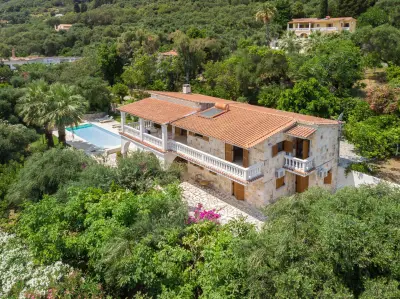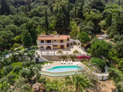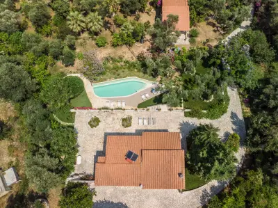 In the heart of Corfu, in a beautiful garden of 2 ½ acres overlooking the sea, full of huge and very old olive trees, palm trees, various citrus trees and other fruit trees as well, as many kinds of flowers, stand Ionian Garden Villas: Villa Olea, Villa Pietra and Villa Sol.