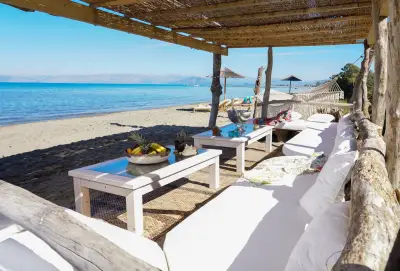 Estate is situated in the middle of Lefkimmi bay, 35 km south of Corfu town and the airport (45 minutes average by car and 20 min by boat) , a great sandy beach coast with privacy in the middle of the most beautiful olive grove of the island.