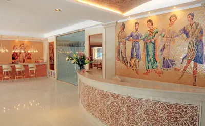 This 5-star hotel offers guests a variety of premium services and facilities, elegant rooms and suites, a wide array of delectable cuisines, several bars including a roof top bar, where guests can enjoy magnificent sunsets accompanied by music and refreshing drinks, two outdoor swimming pools and a full-fledged spa for relaxation and rejuvenation. To complete the hotelâs offerings, a pristine Mediterranean beach is just a short walk from the hotel.As guests step into KAIRABA Mythos Palace, they immediately travel back in time to the old Greek empire as the décor and architecture of this hospitality palace is a tribute to the many millennia of Greek, Roman and Byzantine history of the island. Among the most impressive ornamental features of the hotel are impressive mosaics, an assortment of non-religious mosaics, that is considered the largest of its kind in the world, and a collection of 10 mosaics that celebrate some of the important traits that allowed these empires to carry their dominance for their respective extensive times. Furthermore, this palatial resort is dedicated to Grand Princess Sophia Zoe Palaiologina, a former resident of Corfu and wife of Tsar Ivan III.With its perfect location KAIRABA Mythos Palace offers access to various outside activities. The town of Corfu is only 39 km away and is a place filled with culture and nightlife. Lefkimi is also a short distance away from our hotel and offers a calmer beachside setting with numerous restaurants and beaches.Finally, KAIRABA Mythos Palace is an easily accessible Greek island paradise, as it sits only 38 km away from the airport. This makes it the perfect holiday destination for those seeking a Mediterranean experience within Europe.