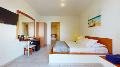 All our rooms are air-conditioned and come equipped with en-suite bathrooms featuring showers, telephones, SAT-TV, fridges, and either a balcony or terrace. Double rooms can accommodate a maximum of 3 guests (with an extra bed), while our superior rooms are suitable for up to 4 guests. Family rooms offer the convenience of two separate bedrooms, one with a double bed and the other with two single beds.