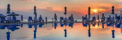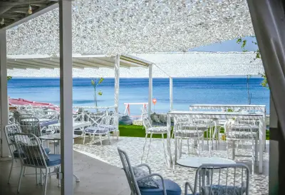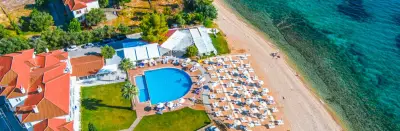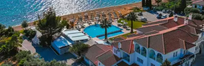 A 35-room boutique hotel, completely renovated in 2021, with 2 restaurants (1 Ã la carte and one buffet), organized private beach, beach bar and swimming pool, promises an unforgettable getaway. On the organized beach in front, sunbeds & umbrellas are offered for the guests, while beach service is available all day. The hotel disposes 2 room types, with the main difference among them to be the view: Comfort rooms offer relaxing view to the hotel's gardens' while Superior rooms offer sea view. The hotel also has 2 rooms for people with disabilities, with fully accessible bathrooms. All rooms have an individual air-condition, mini bar, television and shower in the bathroom.