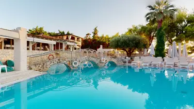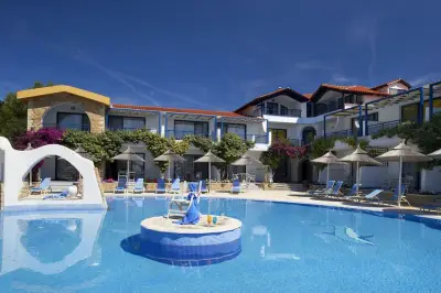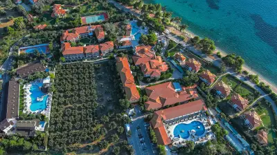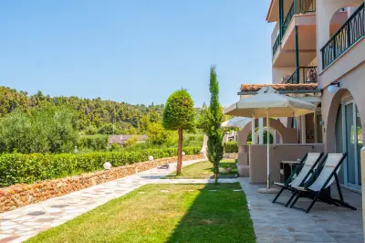 Location-wise, Athena Pallas is gracefully positioned on Elia Beach within Sithonia, Halkidiki, crafting a serene and captivating setting reminiscent of a traditional Greek village. The entirety of Sithonia Peninsula boasts pristine beaches with crystal-clear azure waters, ensuring moments of tranquility and an immersive experience in nature's splendor. Our convenient proximity to Nikiti (9 km) and Neos Marmaras (11 km) opens up a realm of recreational possibilities. Complimentary hotel transportation or the local public bus offer seamless accessibility to these neighboring destinations.