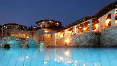 Within this authentic village atmosphere, culinary experiences range from savoring traditional Greek recipes to indulging in Mediterranean cuisine. The renowned main restaurant 'Doxato' and the rustic Greek tavern 'Lemoni' offer exquisite dining encounters. Complementing these dining choices, our selection of six bars remains at your service. Enhanced by a 1200 square meter spa facility, a cutting-edge gym (complimentary access), as well as amenities like a sauna, Turkish bath, Jacuzzi, and professional massage services, we ensure every guest's exhilaration.