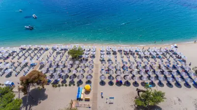 Lagomandra Hotels include two hotel complexes... situated 30 metres from the beach and expanding amphitheatrically in a location where the view of the deep blue sea, the golden beach and the bright green environment create an irresistibly enchanting combination for all visitors to enjoy.