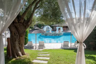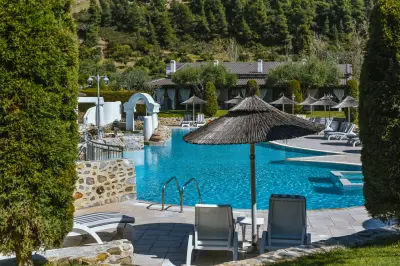 Enjoy the white sand and the crystal clear waters of the Elia beach, the weather and the fantastic colours of Chalkidiki in a five star luxury resort. Blending elegance and functionality in a contemporary minimalist style, with modern, comfortable and stylish rooms, suites and luxurious stone-built house and amenities, like the beautiful 600 square metre swimming pool with waterfalls, small island platforms and a childrenâs pool.