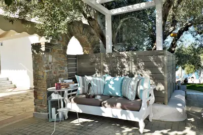 Four individual fully equipped residences (apartments and villas) with private garden in a beautiful, quiet and secluded spot in the coast of Elia, with all modern commodities and direct access to a private beach, offer privileged accommodation without restrictions and are ideal for guests who are really in need of privacy and relaxation.