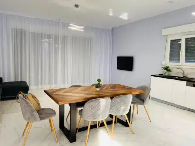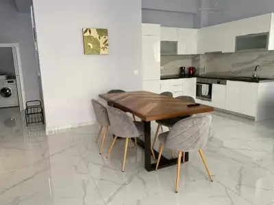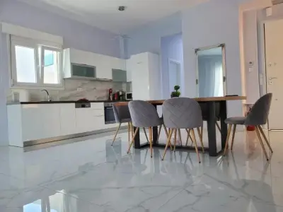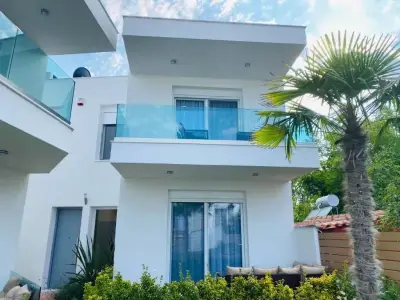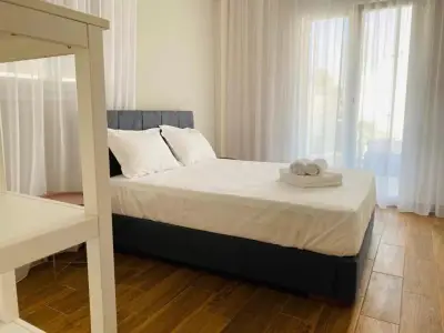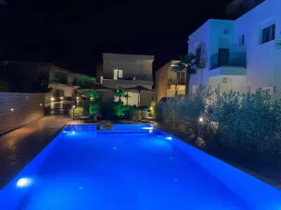 Acrotel Porto Brava Luxury Villas is an elegant beachfront, newly built complex of 8 villas located in the beautiful settlement of Ormos Panagias, in Sithonia, Halkidiki. Offering breathtaking views of the gorgeous seashore, next to wonderful beaches, taverns, shops and entertainment options, it comes to be the perfect destination for families , groups of friends or couples, of all ages who want to discover the treasures of Halkidiki. Nearby, guests can enjoy: the famous long length with exotic landscape beach, named âTrani Ammoudaâ, the Vourvourou bay, unique lagoons around the island of Diaporos, a walk to the picturesque port or a boat trip around Mount Athos which is across the coast.Hotel InformationThe villas have been designed and decorated keeping always in mind the needs of a demanding, modern traveler: open spaces, bright colored, functional & comfort furniture, natural materials ( marble & wood ), spacious outdoor areas, bedrooms with ensuite bathrooms, branded electrical appliances. The provided services are also organized to meet such needs: 24/7 CI/CO, private parking space, daily maid service, meals preparation, and many on demand private services. Each Villa ( sqm ) expands on 3 levels ( two floors ), disposing 3 bedrooms and 2 bathrooms ( 1 ensuite ) on the upper floor, 1 bedroom with bathroom on the middle level and a comfortable living room, a spacious dining room and a fully equipped kitchen on the ground floor, flat screen TV, hairdryer, iron and ironing board, washing machine, safe deposit box. From the ground level there is direct access to the furnished veranda and to the tropical style gardens, while your villa experience is completed with the beautiful view of the sunset from the balcony. The villas are surrounded by lavish gardens with palm trees, and dispose a big heated pool with children's section and Jacuzzi. Sunbeds & umbrellas are offered for free around the pool. A heartbeat away, right on the beach, the Italian restaurant Moda Pasta â which is part of the complex â operates all day preparing breakfast lunch & dinner, for the days that you are not âin the mood to cookâ!