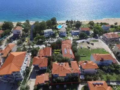 Want to save money while travelling? Itâs easy: hotel «Hotel Nestor» is located in Sithonia. This hotel is located in 16 km from the city center. You can take a walk and explore the neighbourhood area of the hotel. Places nearby: Toroni Beach, Ema Beach and Destenika Beach. Want to be always on-line? Wi-Fi is available. If you travel by car, you can park in a parking zone for free. You wonât be bored as at the hotel you will find a barbeque area. The staff of the hotel speaks English, German and Russian.