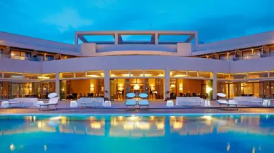 The legendary hotel Astir Alexandroupolis features luxurious rooms, maisonettes and suites, some with private pools, while they all have sea view. The rooms, decorated with unique styles in warm earthy tones, feature a spa bathroom with chromatherapy and impressive lighting. From the moment you step into the lobby you will know you are in Thraceâs finest hotel. Impressive columns dominate the lobby and lounges, either sculptured or dressed in fine silk. The stylish colour scheme and sophisticated materials: silk, velvet and leather, combine classical elegance with contemporary flair.