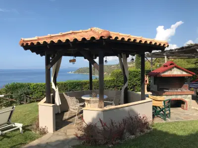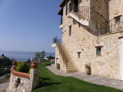 Palamidi is the only stone building up on a small hill, with unlimited sea view, at a close distance from the beach, the village, the port and thermal spa of Agia Paraskevi, offering its guests cozy furniture studios/apartments for peaceful and relaxing vacations