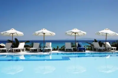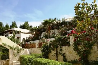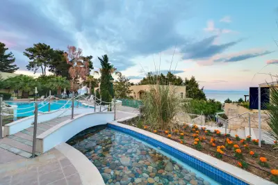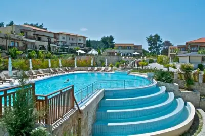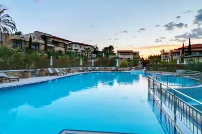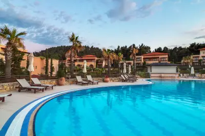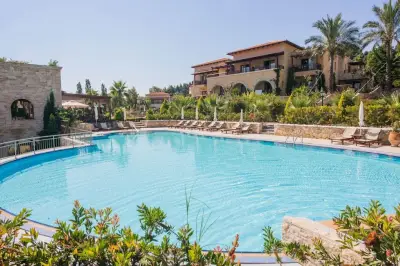 Aegean Melathron is a luxury, 5-Star hotel and a member of the Aegean Star Hotels Group. It is situated in the Peninsula of Cassandra, at Chalkidiki, which is a steady centre of attraction for thousands of visitors both from Greece and abroad. It is 80 km away from Thessaloniki's "Macedonia" Airport and 3 km from the bustling town of Kallithea, which offers many attractive options for entertainment. From Thessaloniki, you can reach the hotel either by taxi or public bus