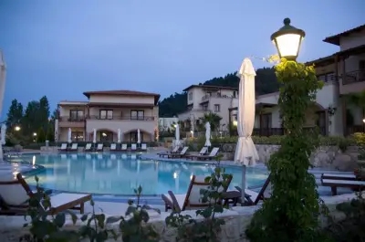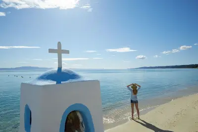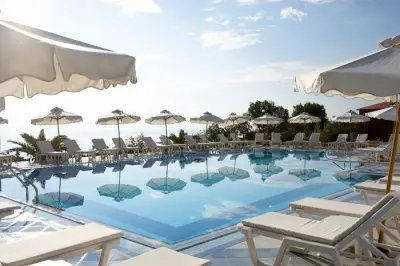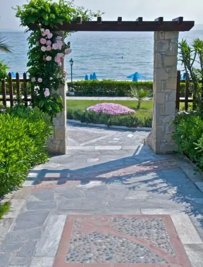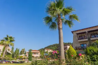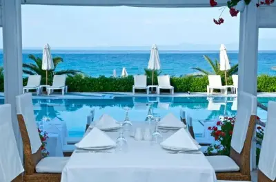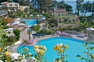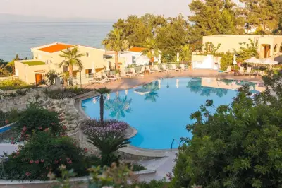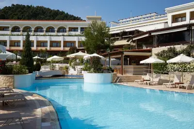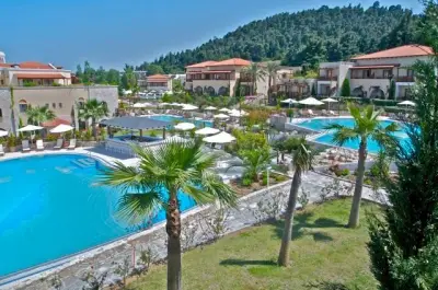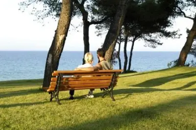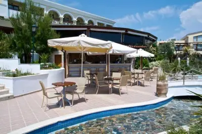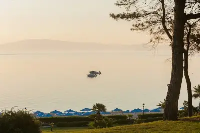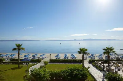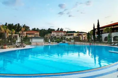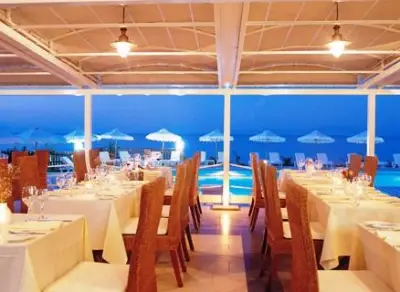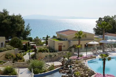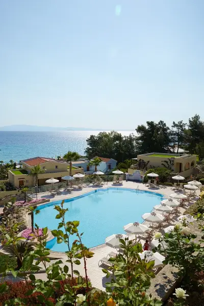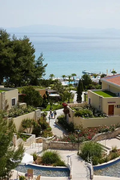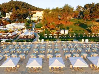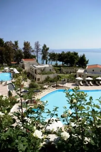 The location is breathtaking and offers contrasting natural landscapes of unique beauty. The hotel is surrounded by a verdant wooded area reaching all the way down to a golden beach and the crystal-clear blue waters of the Gulf of Toroni.
