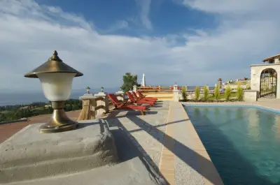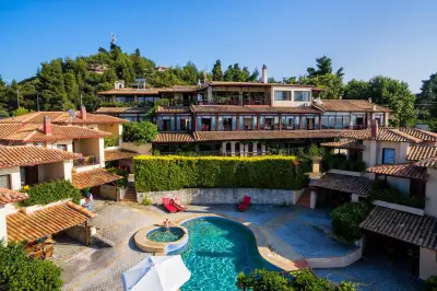 This pleasant and serene site includes three masterfully constructed residential complexes, affording panoramic views of the Toronaios Gulf. All residences (2 private villas, 13 luxury villas, 12 suites) overlook the gardens, the pools and, of course, the endless blue of the sea and the sky.