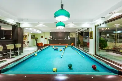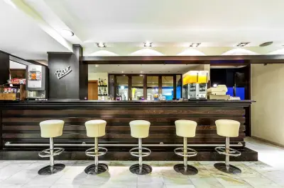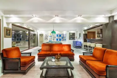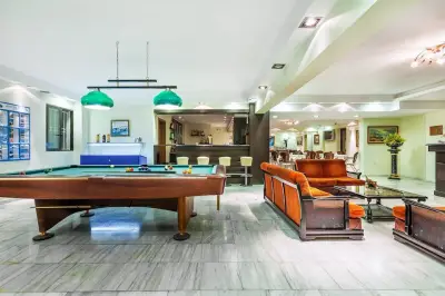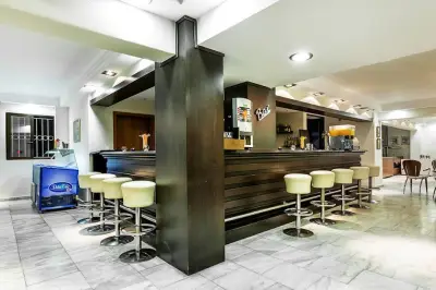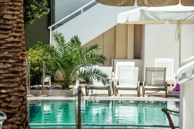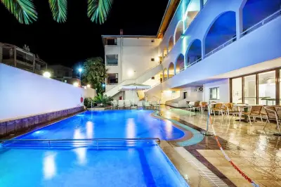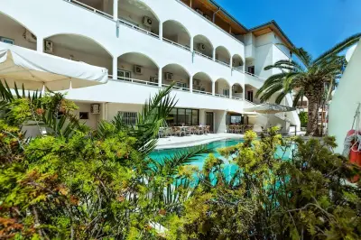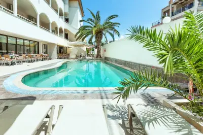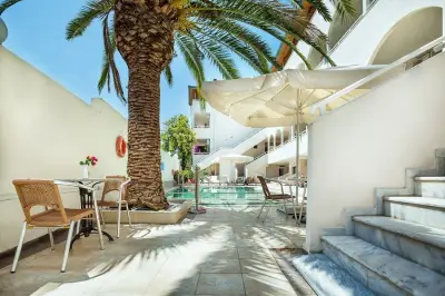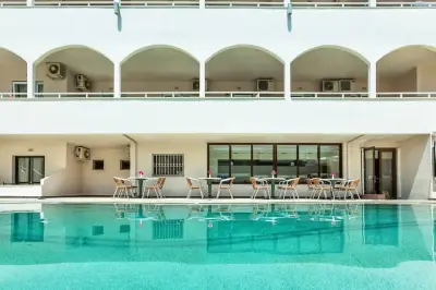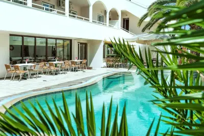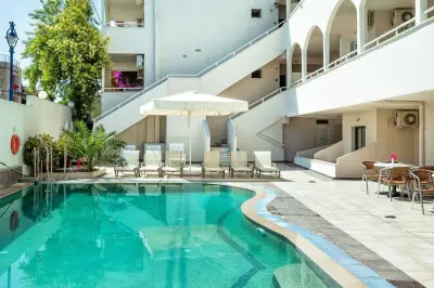 Elinotel Polis Hotel offers a variety of holiday facilities, including an outdoor pool. Sun beds are available around the pool and the hotel bar is just a few steps away.